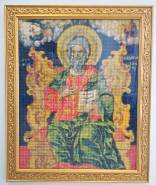 Ψηφιδωτό με γύψινες ψηφίδες κολλημένες σε ξύλο, που απεικονίζει τον Άγιο Γεώργιο ,