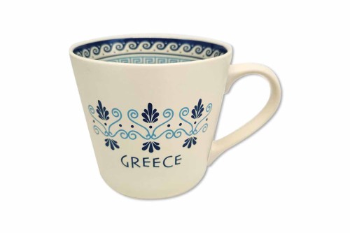 Μεγάλης χωρητικότητας κούπα από κεραμικό υλικό που μπορεί να χρησιμοποιηθεί για να σερβίρετε ζεστά ροφήματα όπως καφέ, τσάι, κακάο κλπ. Μπορεί να αποτελέσει ένα όμορφο στοιχείο για το σπίτι ή το γραφείο. Είναι διαθέσιμη σε μαύρο χρώμα με κεντρικό με καλοκαιρινά Ελληνικά σχέδια.