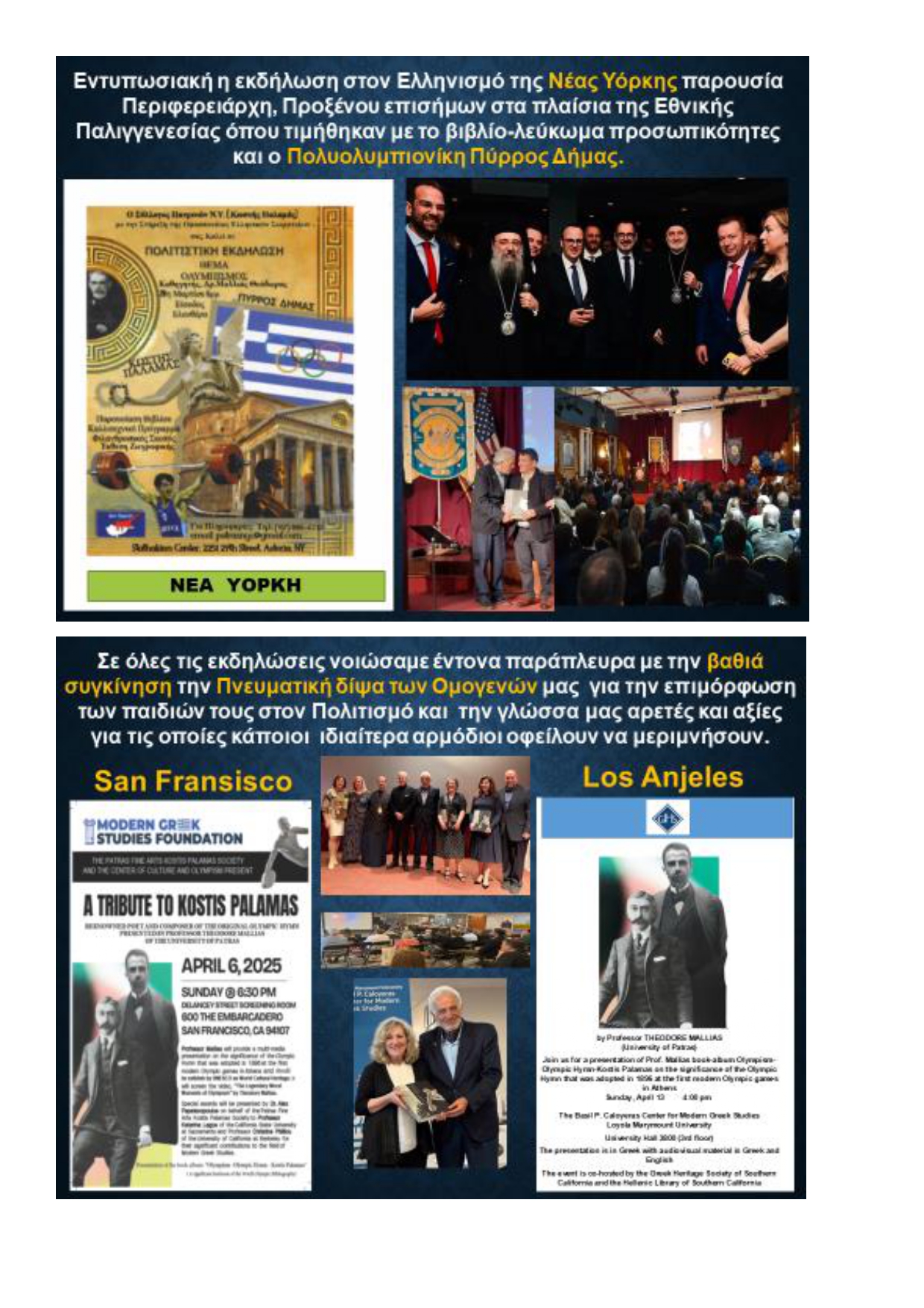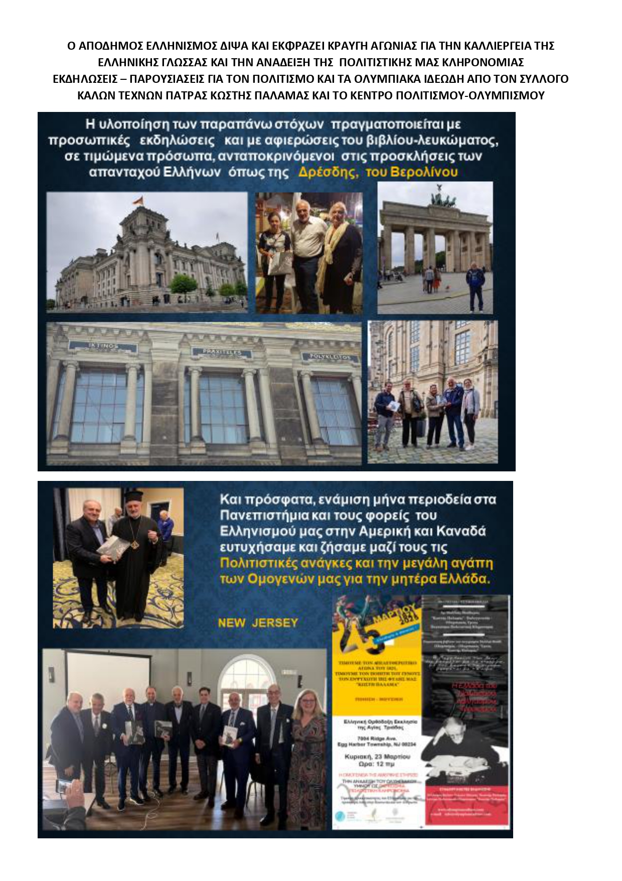 Για τον Σύλλογο Καλών Τεχνών Πάτρας Κωστής Παλαμάς και το Κέντρο Πολιτισμού-Ολυμπισμού Κωστής Παλαμάς