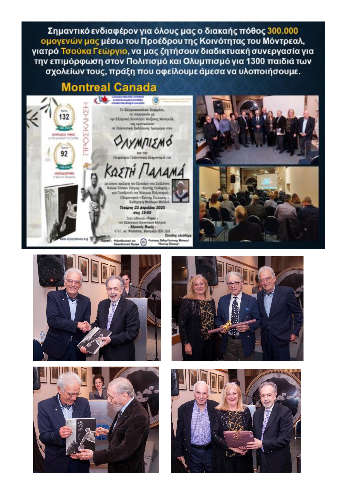 Μάλιστα ζητήθηκε στην Ημερίδα, από τον κ.Μαλλιά Θεόδωρο η βοήθεια της Περιφέρειας και κάθε αρμόδιου φορέα να στηρίξουν την υλοποίηση του διαδικτυακού προγράμματος που συμφωνήθηκε στην εκδήλωση του Ελληνοκαναδικού Κογκρέσου με τον Πρόεδρο της Κοινότητας του Μείζονα Μόντρεαλ, γιατρό κύριο Τσούκα Γιώργο, , σε μία ζωντανή πολιτεία 400 χιλιάδων κατοίκων, με σκοπό την επιμόρφωση στον Πολιτισμό 1.200 παιδιών τους. Αυτών των παιδιών που θα κρατήσουν αύριο ζωντανό το Ελληνιστικό θαύμα.