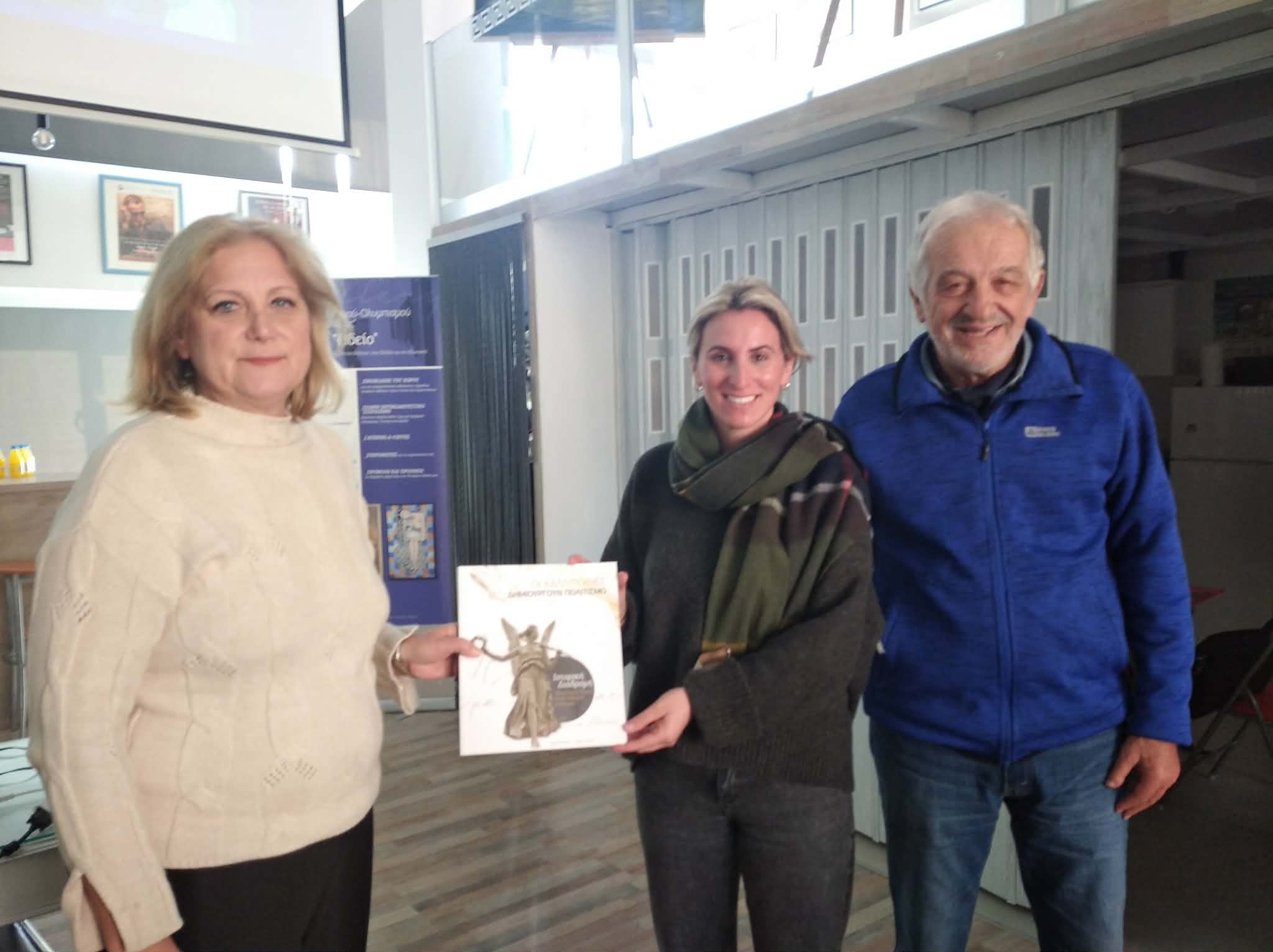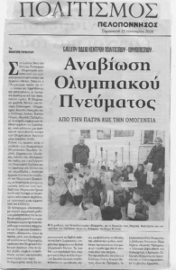 Εκ μέρους της Διεθνούς Κίνησης Ολυμπισμού, του Κέντρου Πολιτισμού-Ολυμπισμού «Κωστής Παλαμάς»