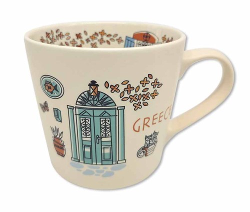 Μεγάλης χωρητικότητας κούπα από κεραμικό υλικό που μπορεί να χρησιμοποιηθεί για να σερβίρετε ζεστά ροφήματα όπως καφέ, τσάι, κακάο κλπ. Μπορεί να αποτελέσει ένα όμορφο στοιχείο για το σπίτι ή το γραφείο. Είναι διαθέσιμη σε μαύρο χρώμα με χαρακτηριστικά σχέδια Ελληνικών νησιών.