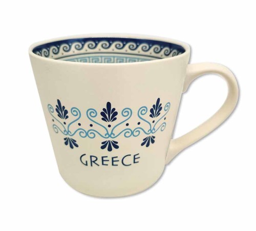 Είναι διακοσμημένη με μπλε Αρχαιοελληνικά μοτίβα.
