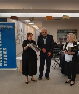 At the end, the book on Olympism and Kostis Palamas was awarded in honor of the Director of the Center for Modern Greek Language at the University of Loyola Marymount, California, Mrs. Christina Bogdanou, the President of the Hellenic Heritage Society, Mrs. Bessi Kara Lazaris and the President of the Hellenic Library, Mr. Philip Treveza, for their great contribution to Culture, Arts and Letters.
